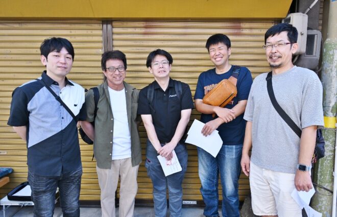 「お久しぶりです!」。おお~、その声は。地元で金属加工を営むミタカ金属工業の社員さんたちやその取引先のみなさん。やっぱりきたかミタカ。とりあえず1年ぶりの再会を懐かしみました。