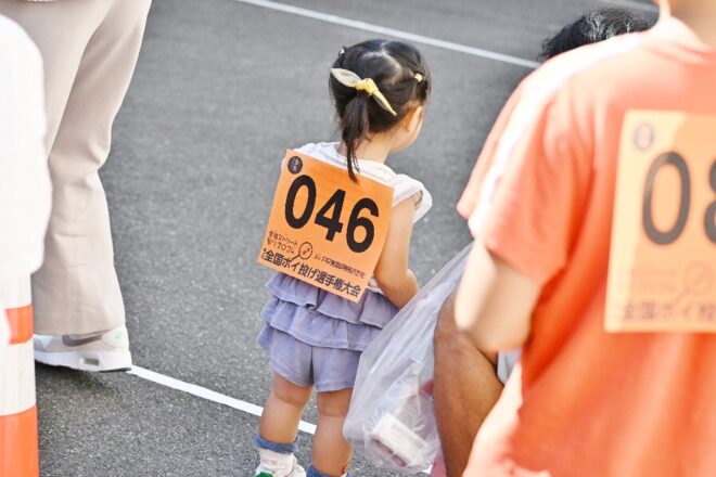 そんな中で行われる「第4回全国ポイ投げ選手権大会」。4年前から祭りのイベントのひとつとして加わりました。「そんなん何がおもろいねん」「投げても飛ばんやろ」「ポイは投げるもんじゃなくてすくうもんや」などといった多くの期待の(?)声もありましたが、大方の予想に反して過去3回とも大盛況。大人も子どもも楽しめる、スポーツの日にふさわしい清々しいイベントとなりました。