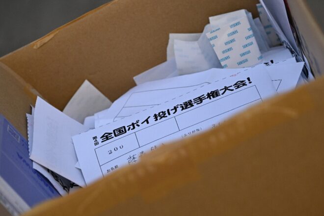 さてさて、ポイ投げ大会の会場のほうはどんな状況でしょうか。それでは特設会場にマイクをお返しいたしまーす!