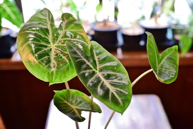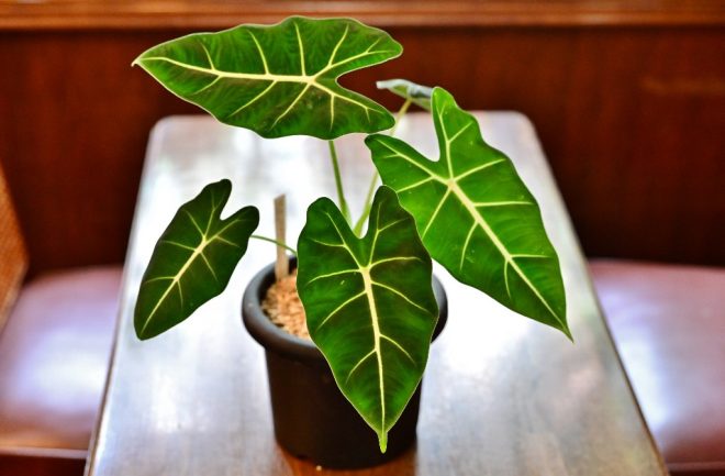 お気に入りは、アロカシアグリーンベルベット。まるでデザインされたような葉脈が印象的です。
