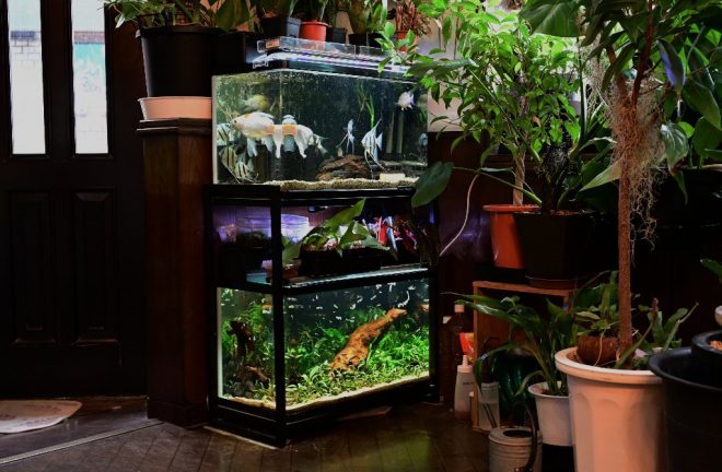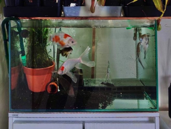 ちなみに良平さん宅の水槽。かつて命拾いした金魚も、ここでのんびりすごしています。近い将来、ここはきっとプレコ御殿になることでしょう。