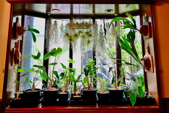 良平さんがこだわった出窓。店内から見るとこんな感じに。植物と入り込む陽の光とのバランスがとってもゴージャス。午後になると、適度に陽も差し込み植物にとっても健康をキープしています。