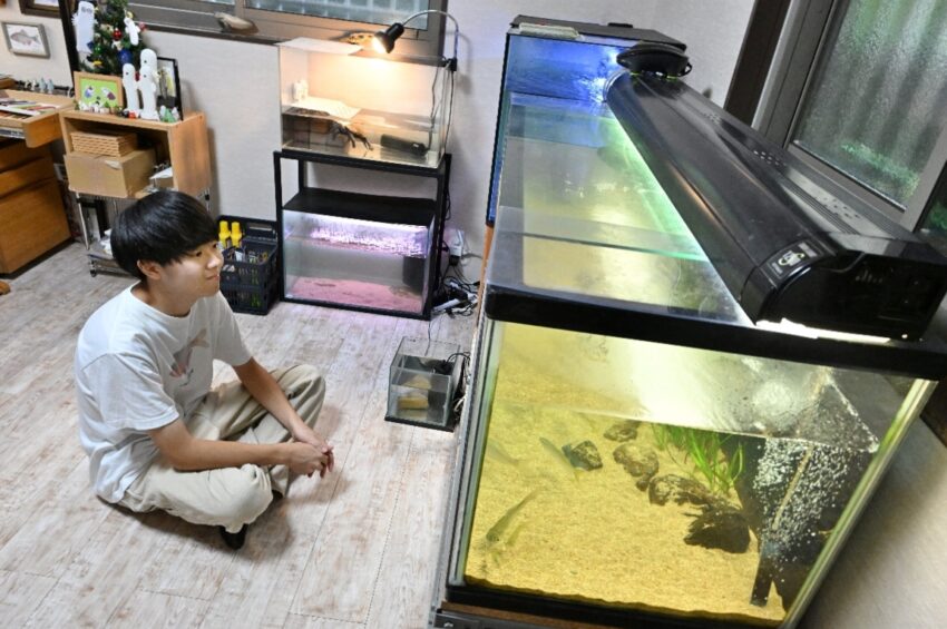 アクアリストというよりナチュラリスト。川魚を心底愛し、生物多様性に対する保全意識も高い陸君。そんな陸君はアクアユーザーとしての顔も。自宅には、川を再現した淡水魚水槽がズラリと並んでいます。陸君の「アトリエ」へようこそ。