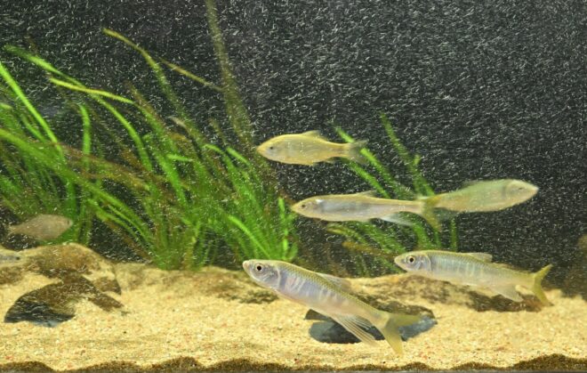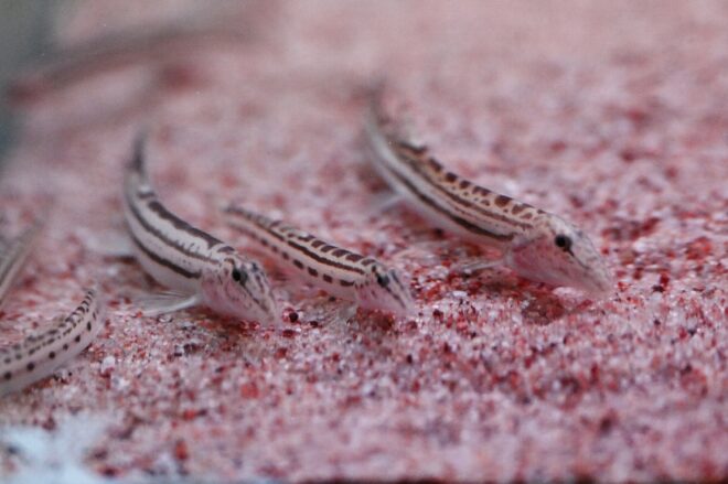 この中でも特にお気に入りは、びわ湖に生息するオオガタスジシマドジョウ。3匹いるうちの一番左と右にいるのがそうで、特に左の子がお気に入り。「きれいなラインがくっきり入っていて、メリハリの効いた色が気に入ってます!」。