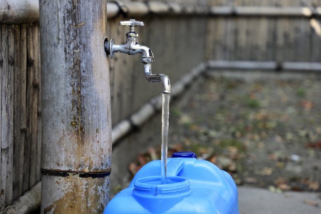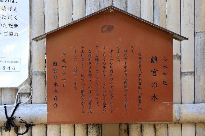 境内の塀際にあるのが取水場所。蛇口をひねるだけで、地下からくみ上げられた離宮の水が出てきます。時間制限こそありますが、ペットボトルやポリタンクを持参して水の恩恵にあやかる人は少なくありません。