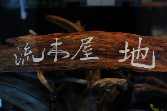 屋号は「流木屋 地(つち)」。ん?「ち」でもなく「とち」でもなく(笑)?なんかこだわりが詰まっていそうなので、あとでじっくり聞くことにしましょう。ちなみに、題字は書道家の奥様が書かれたそうですが、「地」だけはどうしても自分で書きたいと、伝統文化を重んじる書道家に割って入って我を通したそうです(笑)