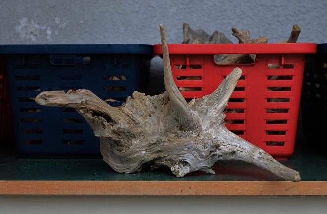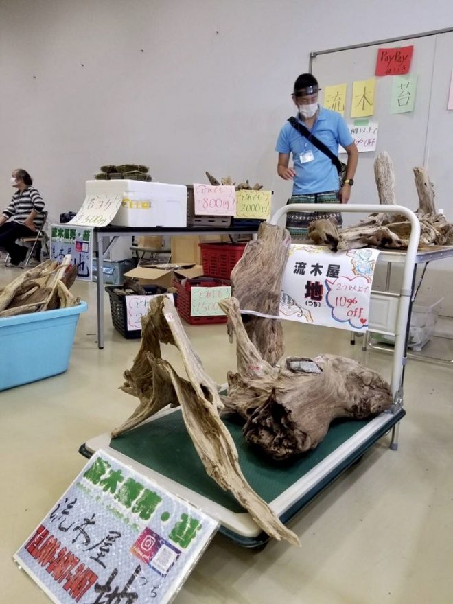 大きいサイズのものから小さいものまで多種多彩。今回は爬虫類飼育向けの流木が多かったようですが、これからはアクア系の沈水流木もぜひ。