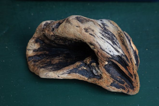 黒いところがあるのは木の色違い?「雷に打たれた跡がそのまま残っている証拠なんです」。へー、落雷のせいでこんなに黒く焦げた!?台風なのか、急な天候の異変なのか、集中豪雨なのか。色々とイマジネーションは広がります。流木というと、読んで字の如く海岸に流れついた木というイメージが定着していますが、元はといえばどこかの山に植わっていた木ですから。不運にして落雷の攻撃を受けてしまった木なんだと思うと、ちょっと切なくなったりなんか。
