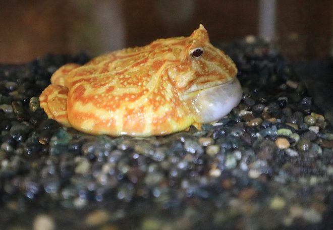 ほかにもマダライモリや「まるでチョコミントみたいに可愛かったからお迎えしたんです(笑)」というミルキーフロッグ、なぜか犬のようにワンと何度も鳴いて取材中盛り上がったクランウェルツノガエルなど、もし野生なら弱肉強食の関係にあった両者が、ごく近くで同じ飼育者のもとで暮らしているとは、不思議な気がしました。
