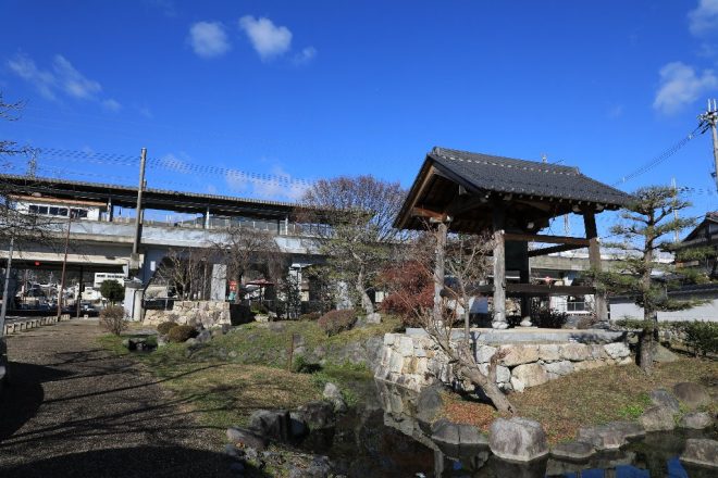 さほど広くない公園のスペースに、現役ではなさそうな古めかしい鐘が一体。案内板によると、1571年(元亀2年)に起きた織田信長による延暦寺焼き討ちの際、それを知らせるために打ち鳴らし続けたあまりに、鐘本体にヒビが入ってしまった鐘なのだそう。通称・破れ鐘。焼き討ちの危機を一人でも多くの人に知らせたかったのでしょう、よほど力強くしかも長時間鳴らし続けないとヒビなど入りません。