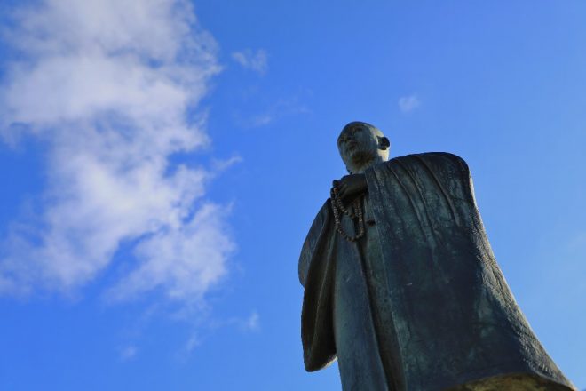 破れ鐘のそばには、若き伝教大師・最澄の像。この人物こそ天台宗総本山・比叡山延暦寺を開いたキーマンであり、姉川の戦いの絡みで信長と敵対関係にあった浅井・朝倉寄りであったのが比叡山であったことも焼き討ちの要因のひとつだといわれています。焼き討ちの際に打ち鳴らされた鐘と、最澄の像。公園に建てられたオブジェにしては、あまりにも生々しいシチュエーションといえなくもありません。