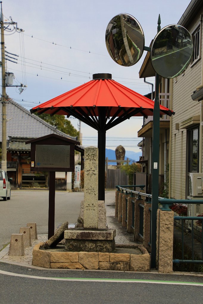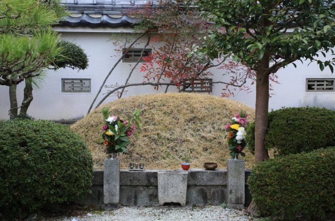 光秀の実質的な墓だといわれている、明智塚。一般住宅の一角にひっそりとたたずんでいました。本能寺の変が起きた同じ時に山崎の合戦途上で命を絶たれた光秀は、坂本城落城とともに54年の短い生涯を終えました。その際の遺品ともいうべき刀や武具などが、ここに埋められているといわれています。現在は地元の人々によって大切に管理され、献花が絶えることはありません。