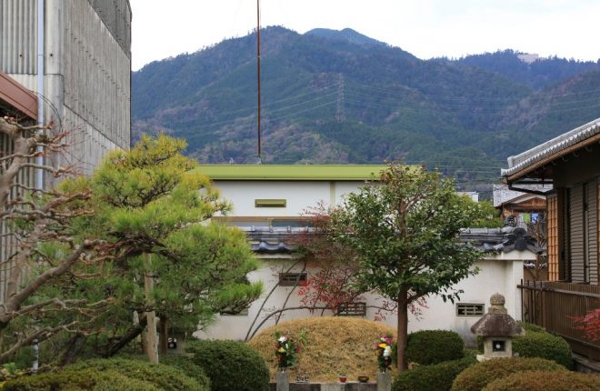 小高い丘のような土盛りの向こうには、比叡山が。信長の指示通り、延暦寺の焼き払いには成功したものの、坂本の町民に恨みを買ったはずの光秀。今こうして、地元の人たちに厚く祀られているのも皮肉な結果ともいえるでしょう。