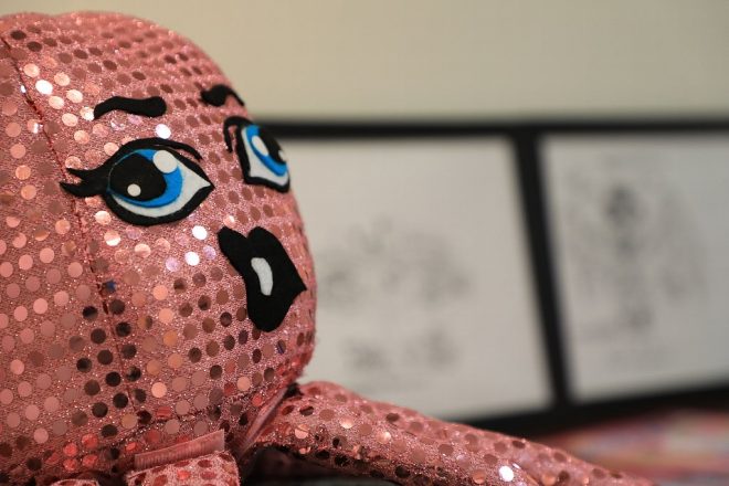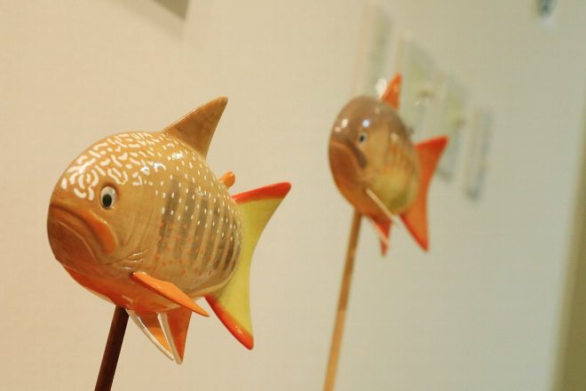 トモチンさんは松竹芸能所属のシンガーソングライター。魚好きが講じて、サカナヘンにも参加。ユニークな作品はもちろん、トークの面白さも相まって見どころ&聞きどころ満載。タチウオをモチーフにしたベルトやら、手足がペンになったペンダコやら、さすが関西の芸人魂MAXの作品が印象的でした(笑)。