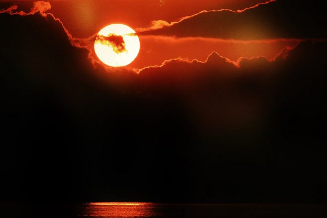 500ミリレンズを駆使したびわ湖の夕陽。いいですね~。