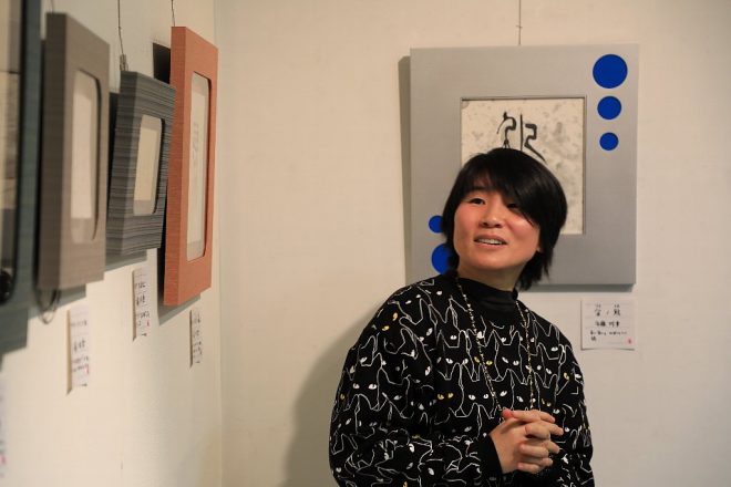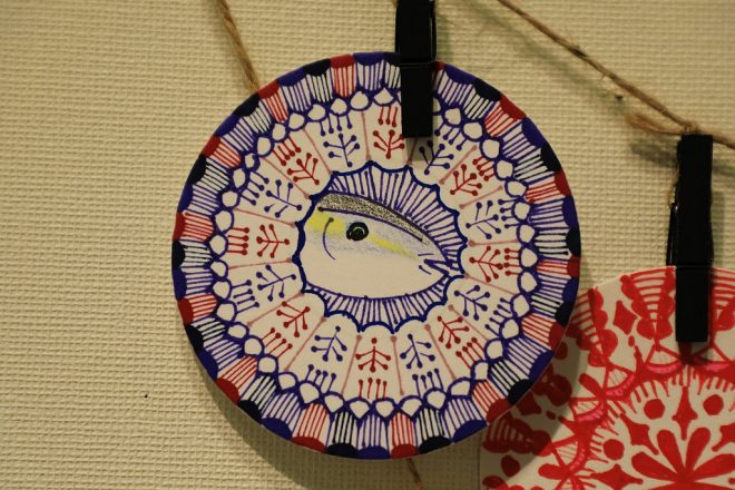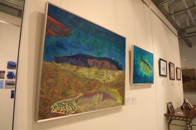 グラフィックデザイナーでありながら、のこぎり奏者でもあるというユニークなプロフィールの安藤玲子さん(八尾市)。今やサカナヘン愛が一番強いともいわれていて、墨で描かれた文字やチンアナゴが印象的でした。それにしてものこぎり奏者って気になります。え、最終日でも弾いた?ずる~い(笑)!