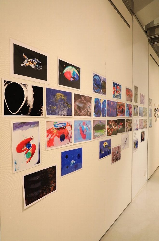 おお~、まるで美術館の様相。油画、アクリル画、POPデザインを展示したブース。「自分で言うのも何ですが、かなり面白いと思ってます(笑)」と神谷利男さん(大阪市)。さすがクリエイターだけあって、発想も内容もポテンシャルが高い!