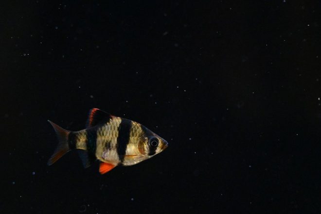 熱帯魚の定番でありながら、気性が荒いため混泳にも注意が必要なスマトラ。黒と赤の色合いが人気で、スマトラのみやコイ科の魚であれば混泳も可能です。