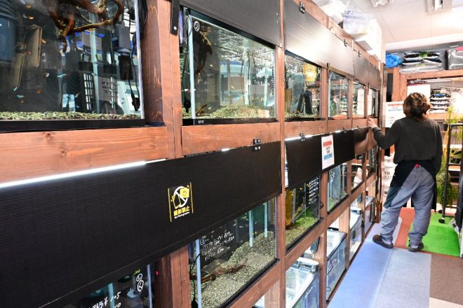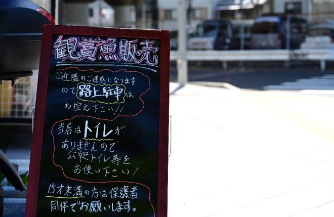 取材中、初めて来店したという男性客と遭遇。「店の前を通りかかった娘が教えてくれたんです。近くにはホームセンターしかなかったので、ちょうどよかったです」。今はスネークヘッドを飼っていますが、かつては大型魚の飼育経験もあるそうです。この日は、ウィローモスに巻きつける石と冷凍アカムシを購入。色々とお話を聞かせてもらったあとは、「またきます」とニッコリして帰って行かれました。ご来店ありがとうございました!