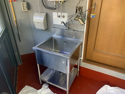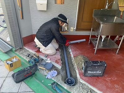 アクアショップには水がつきもの。シンクを新設すべく水道工事も行われました。