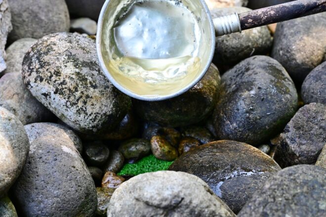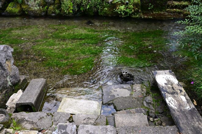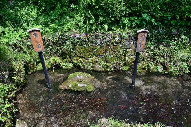 地蔵川周辺には、ここ以外にも「十王水」「西行水」といった水のスポットがあります(写真は水琴窟の音色が楽しめる西行水)。