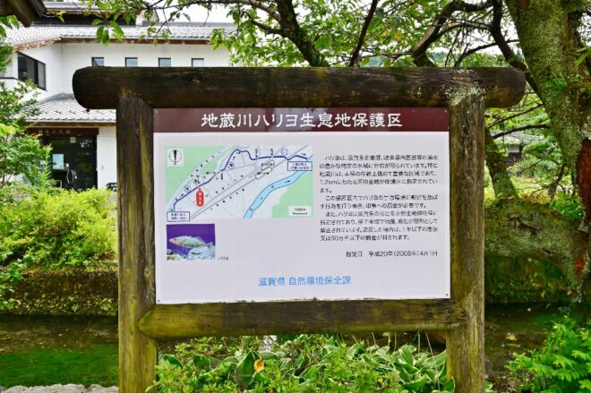 別のところにはこんな表示も。そう、地蔵川は知る人ぞ知るハリヨ生息地保護区でもあったのです。梅花藻ばかりに目がいきがちな醒井宿ですが、実は絶滅危惧種に指定されている淡水魚・ハリヨも、地蔵川が大切な居場所だったのです。