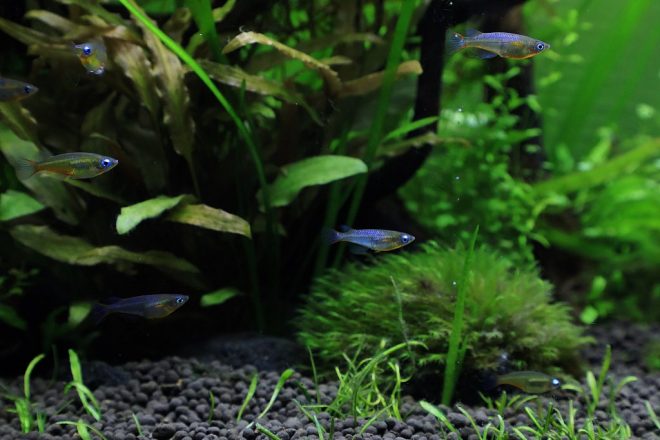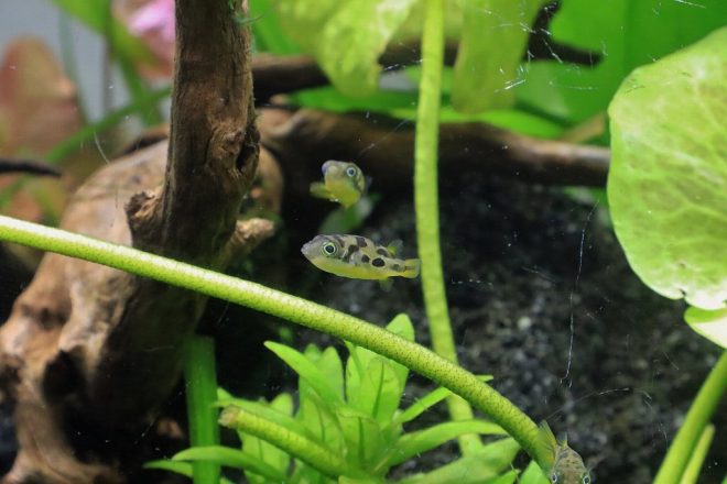 実はこの水槽、あの世界最小の淡水フグ・アベニーパファーを飼育したかったからつくったのだとか。アベニーは、外見こそとってもヒョコヒョコと可愛いんですが、実はとがった歯を持ち結構ヤバいやつなんです。