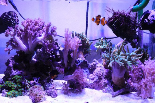 直近の水替えは3カ月以上も前。しかもろ過材を使わず、ライブブロックに水流を当ててろ過する「ベルリンシステム」によって、海水魚を飼育しやすい環境につくり上げました。自宅で海水魚を飼いたいと思う人は、ぜひお店を訪ねてみてください。