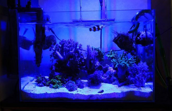 一般的に飼育が難しいといわれる海水魚水槽。このため、おうちに海水魚があるのは珍しいケースです。水槽を立ち上げてかれこれ7年以上経過。強い水流と強い光を意識して、サンゴをメインテーマで育成しています。