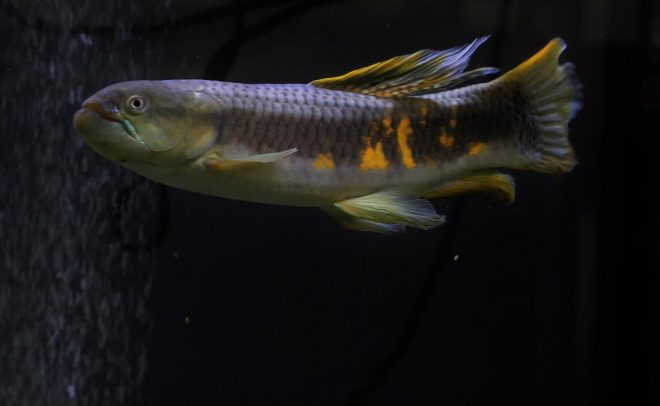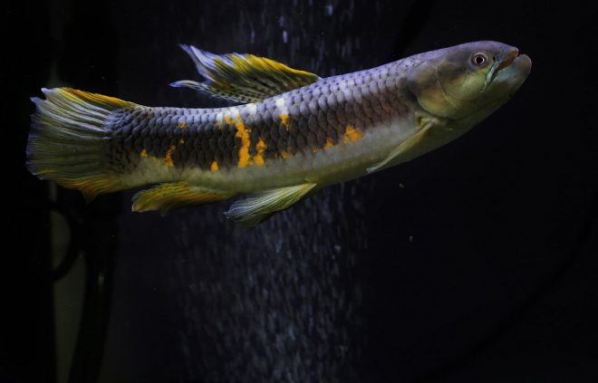 寒さが苦手なポリプテルス。こういう種類の魚には、逆にエサをしっかり与えたほうがいいのだそうです。
