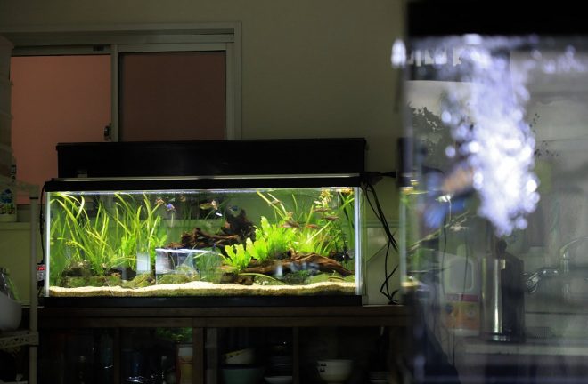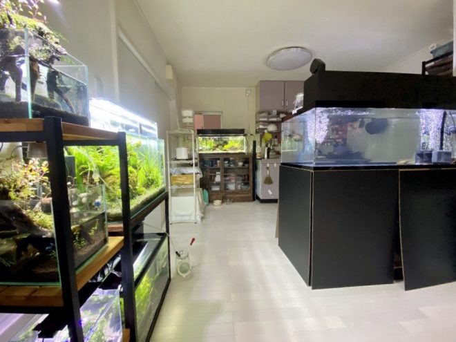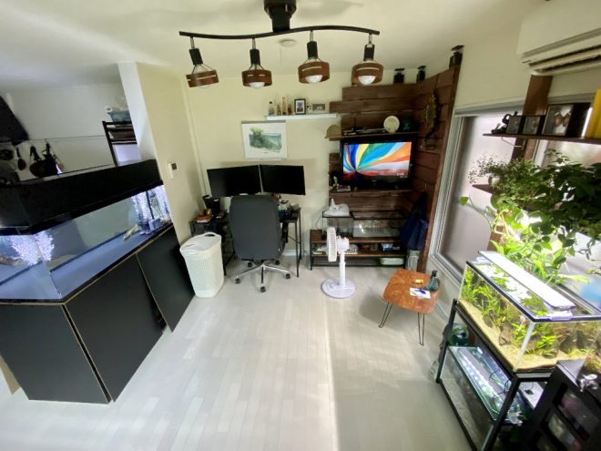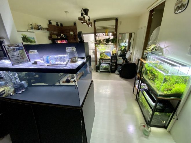 ほかにも稚魚だけを飼育中の稚魚水槽など、家じゅう2人の独自の世界観で演出されています。