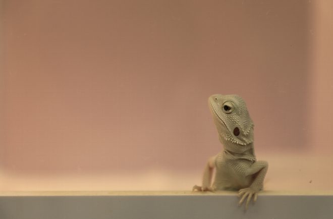 今回の取材で、キワメテスタッフ♂が最も気になったのが、フトアゴヒゲトカゲのコイツたち。この表情と仕草、シュッとした顔立ちがたまらん(笑)。