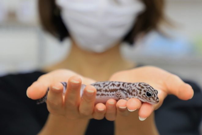 女性がニシアフやレオパを飼うのは、ペットとして手頃だから。犬猫だと散歩が必要だったり医療費や食費がコスト高になったり。そういう点では、レオパだと比較的丈夫でコストもかからず、スペースもさほど必要ないことも、人気に拍車をかけているようです。そういえば以前、「一人暮らしをしてるんですが、仕事を終えて家に帰ってきてから遊べるというのが魅力なんです」という声を聞いたことがあります。ご存じのように、ニシアフもレオパも夜行性。一人暮らしの女性も、ある意味夜行性。夜はゆっくりペットとすごしたい人にとっては、お互いの生活リズムを崩すことなくハンドリングなどペットと寄り添うことができるのも大きな人気の要因かも知れません。