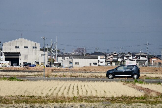 近鉄橿原線・九条駅周辺は、田畑が数多く残るのどかなエリアで、金魚池もところどころに。