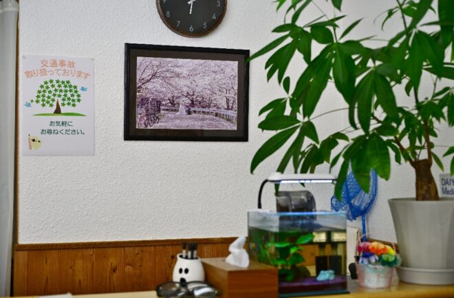 院長の橋本和孝さんは36歳。奈良市出身で、学校も遊びも近鉄沿線でこなし、高校卒業後は専門学校で学び整骨医を目指しました。もともと生きものが好きで、開業時に真っ先に思いついたのがアイキャッチとしての金魚水槽を院内に置くことだったそうです。「私だけでなく、みなさん同じ思いで金魚を置いているのだと思ってました(笑)」。