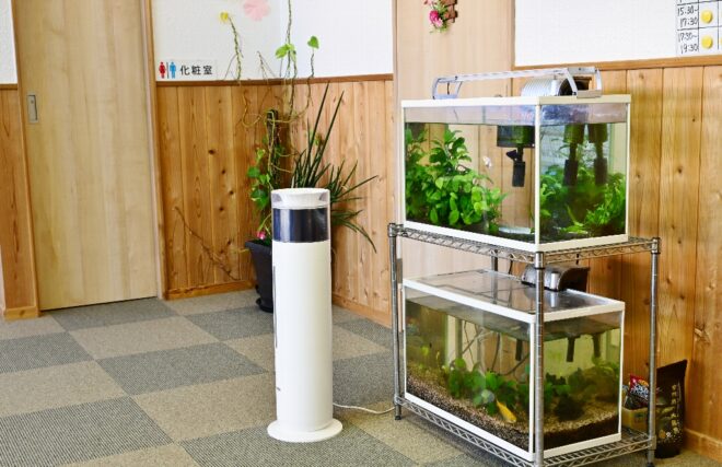 また、子どもたちにとっては地域のちいさな水族館。お母さんが施術している間も、待つのに退屈することなく生きものとふれあいながらコミュニケーションを図っています。