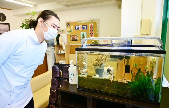 患者さんが水槽に接する時間も当然増えて、アクアに関心を寄せる人も少なくありません。会話も弾み、「患者さん自身が飼育してこられた金魚をくださったり、たくさん育ったからとミクロソリウムをいただいたこともありました」。