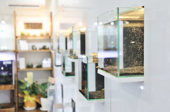 どちらかといえば、これまで和テイストだったメダカをアクア寄りにシフトさせ、生み出したキーワードが「メダカリウム」。メダカ飼育をインテリアチックに、スタイリッシュにブラッシュアップしたメダカリウムの追求こそ、星龍目髙のコンセプトそのものでもありました。