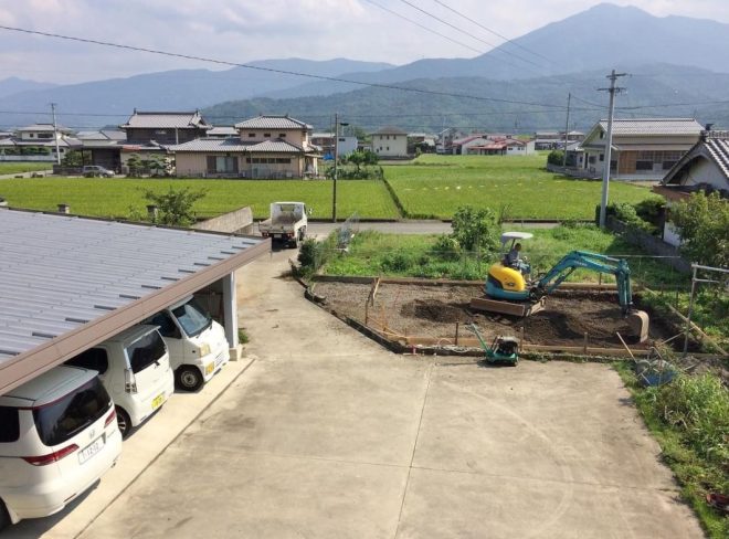 おうちの2階から見た工事中の風景。工務店さんも、まさか魚のおうちだとは知らなかったかも。※