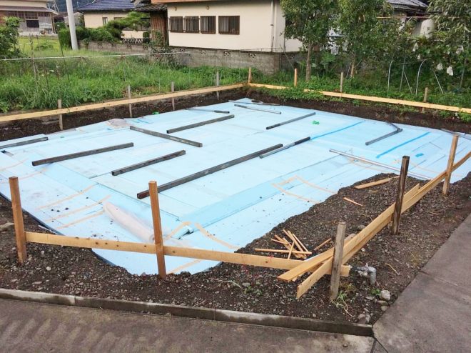 地面を1m掘り下げて断熱材が敷き詰めてられています。床下からの冷えを防ぐための工夫にほかなりません。※