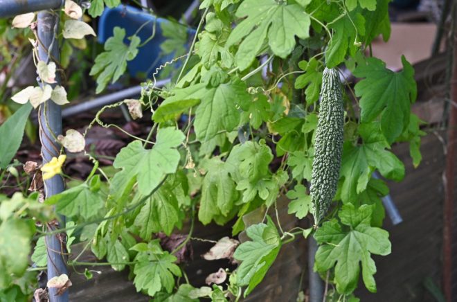 おうちの菜園にはナス、トウモロコシ、ゴーヤ、大根、梅、ブドウ、サクランボ、ビワ、イチゴ、カキなどの野菜や果物を栽培。アクアも顔負けのうらやましすぎるラインナップ。