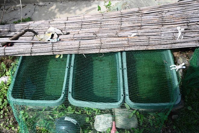 自宅敷地内には、メダカを飼育する環境が色々と。