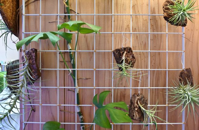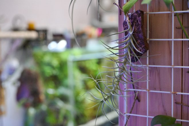 チランジアやビカクシダ、パルダリウムなど、魚だけでなくエアプランツや各種植物も。すっかりアクアショップの様相。