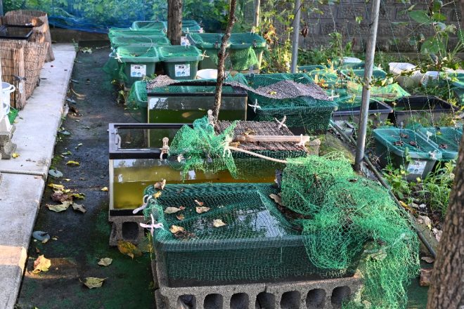 あちらにも。まさかこれが飼育環境のすべてではないですよね?「はい、違います(笑)」。じゃあどこに?おうちの中に水槽があるのでしょうか。