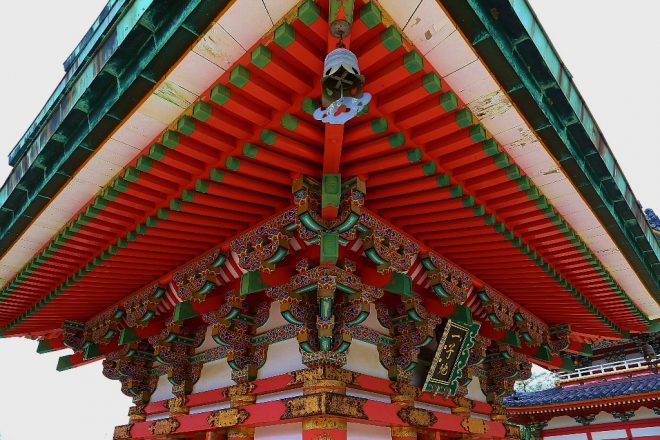 さっきまでの風景が嘘のような、色彩感覚に満ちあふれた境内。