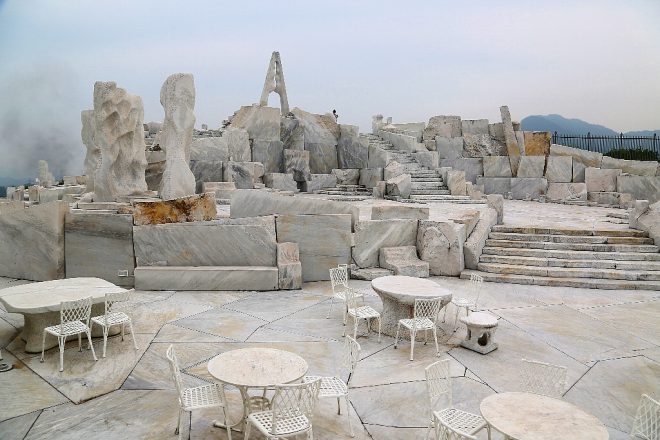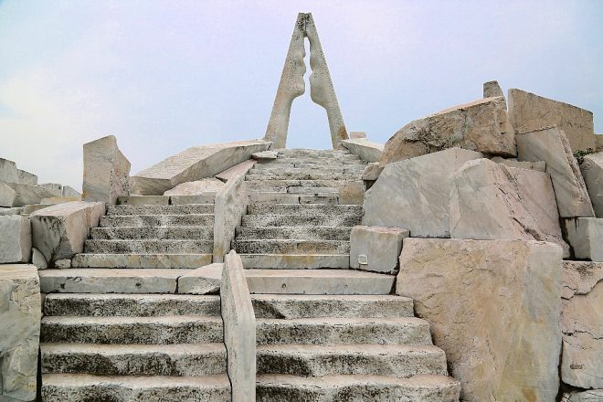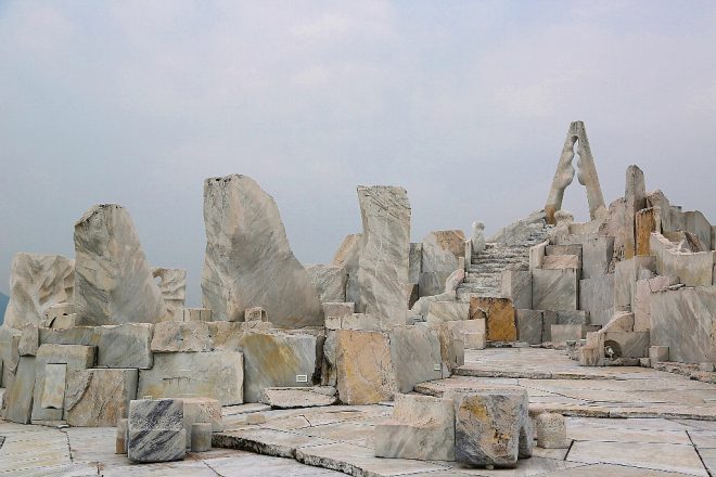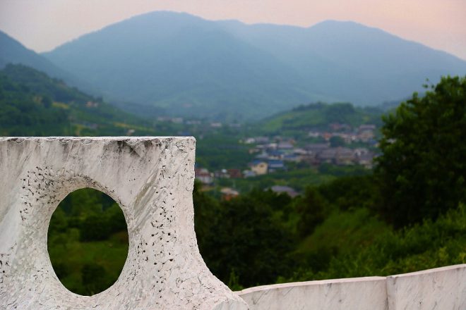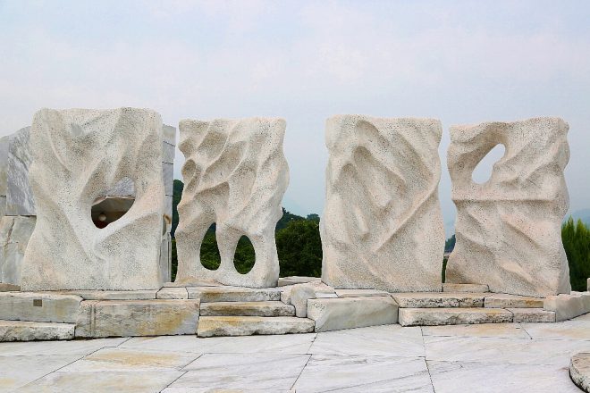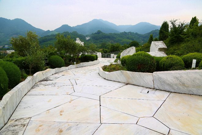 彫刻家の杭谷一東氏が製作した「未来心(みらいしん)の丘」。イタリア産の大理石で構成された大理石庭園は、全国でも珍しいスポットでもあります。
