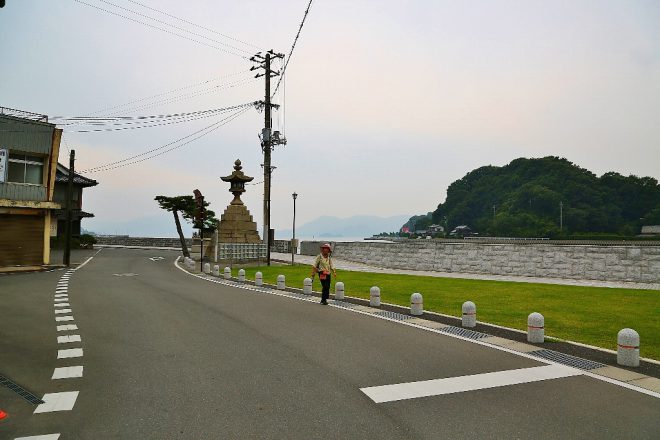 港の向こうには近代的な橋の一部が。そう、ここ生口島はしまなみ海道(来島海峡大橋)により交通アクセスが一変。船から車へ、海から陸へ、転換を余儀なくされたスポットなのでした。