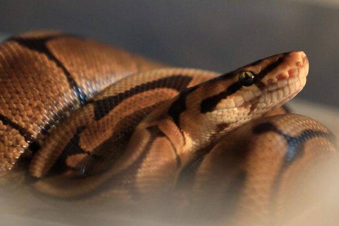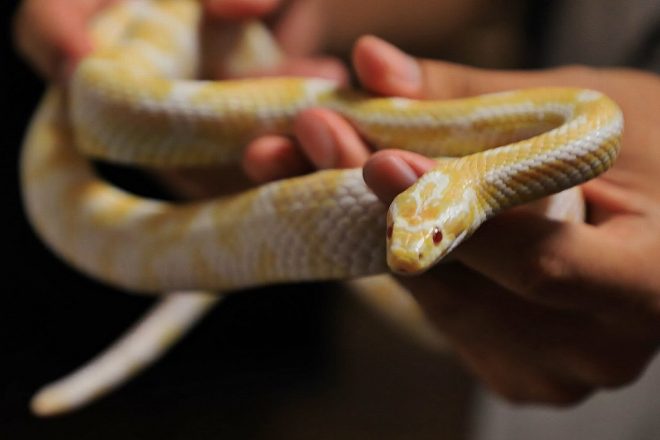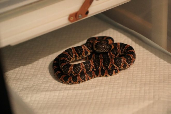 さらに言えば、トグロを巻くタイプのヘビの飼育スペースは少なくともトグロの3〜4倍の広さが必要といわれています。「広いケージのほうが運動ができるので、消化もよくなります。また、もともと消化器の弱いスノーやブラッドレッドなどのベビーは、消化を助けるためにケージの下に保温器を置くことでお腹が温まり、結果的に消化もよくなります」とアドバイスしてくれました。
