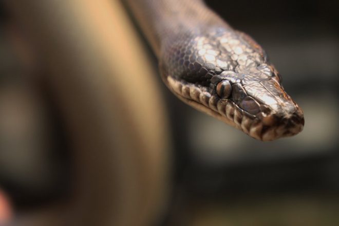 奄美や沖縄地方に生息するアカマタ。毒性はないものの気性が荒いことで知られ、以前にも個人宅の取材で遭遇したことがあります。よせばいいのに、オーナーが血だらけでハンドリングしている光景が脳裏にしっかり焼きついているので、忘れるはずがありません。今日は触らなくてもいいからね、ね、ね、とSHINYA君に懇願したのはいうまでもありません(笑)。ということで、ヘビのご紹介はこれにて終了。次回後編では、爬虫類飼育について意外な注意点があったことに驚かされます。まさに目からウロコ。お楽しみに!