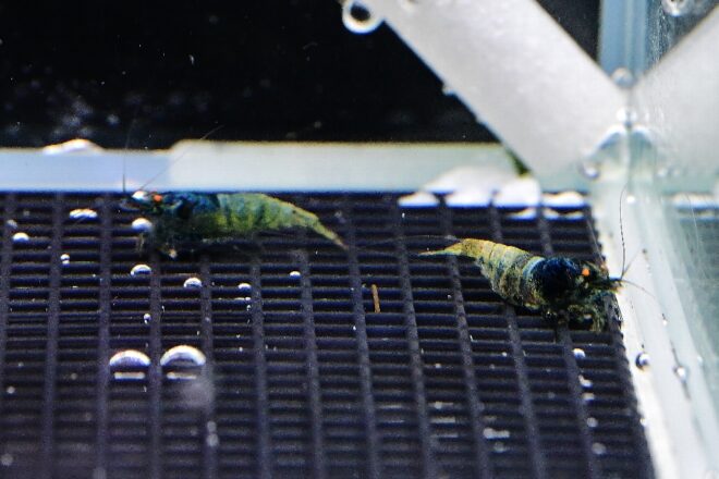 エビは決して水槽のお掃除屋さんにあらず。これも多くのブリーダーが熱弁。生きものの食物連鎖の観点でいうと下位になりますが、コリドラス同様負けちゃいかん!底魚には底魚の意地がある!